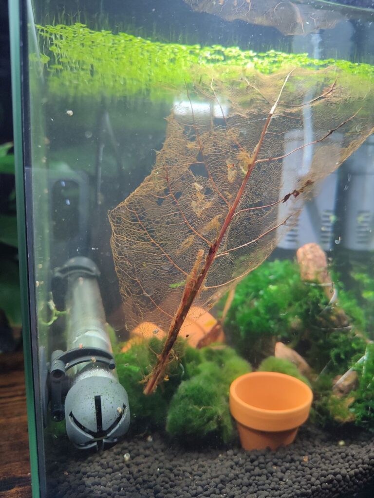 Liść będzie pokarmem dla krewetek, z czasem będziemy mogli zaobserwować jak powstają w nim wygryzione miejsca i będą pozostawać jedynie nerwy. Liść ketapangu, który jest całkowicie obgryziony nazywany jest ghost leafem.
